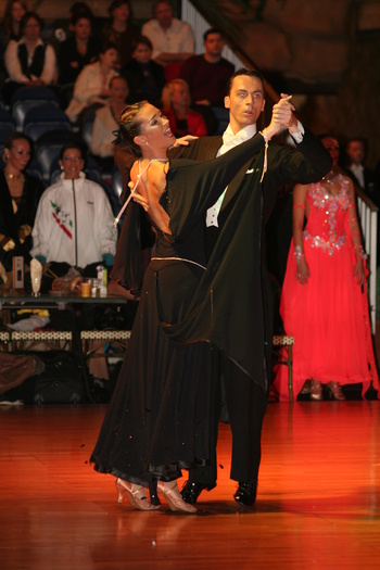 Elegante zwarte ballroomjurk, naar eigen ontwerp. Gemaakt door Rumoer. Aparte blote rug. Veertjes onderaan de rok. Twee onderrokke... | € 600.00 Fixed price | |  | Ballroom dress Netherlands 29-04-2010 |