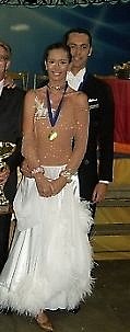 | | Owner | Heleen | | Location | Netherlands | | Advert clicks | 351 | | | | | Type | Ballroom dress | | Color | | | Size | 34-40 | | Price | € 600.00 EURO | | Price Type | Fixed price | | Condition | Used | | | | | Description | 2Jurk naar eigen ontwerp, gemaakt door Rumoer. Op twee manier te dragen: rood of wit. Een a-symetrische top in cappucinokleur met heel veel stenen en twee rokken: een zeer wijde rode rok afgezet met een satijnen band en een evenzo wijde witte rok met daarin een boa op een speelse manier verwerkt. Beide rokken hebben onderrokken. Veertjes met drukknoopjes te bevestigen op het bovenstuk (rood of wit). Opvallende ketting, riem vol met stenen en twee grote armbanden, ook vol met stenen. Aan beide rokken zitten grote floats die weer te bevestigen zijn aan de armbanden. Vraagprijs is voor rood & wit samen. | Description Accessories | | | | | | Transport costs | € 0.00 EURO | Transport Description | |