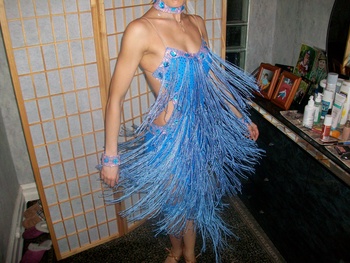 brain new dress. All stoned in swarowski stones, with short white fringies and beads...