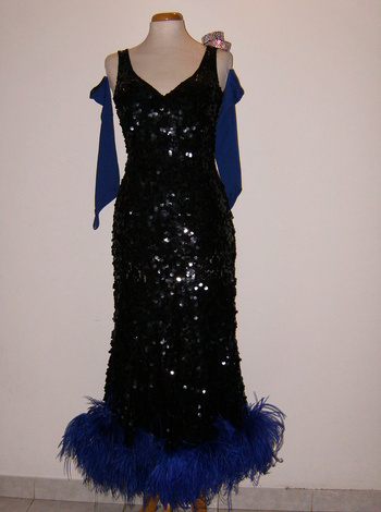 SASHA PUST black paillettes dress with purple ostrich feathers on the bottom and Jet rhinestones on the neckline; | € 0.00 Fixed price | |  | Latin dress Portugal 27-05-2010 |