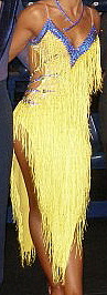 Description Used yellow latin dance dress with blue accents. Chrisanne materials. Bracelets and necklace included. Decorated with dense Swarovski crystals. contact me: sakura161_b@hotmail.com