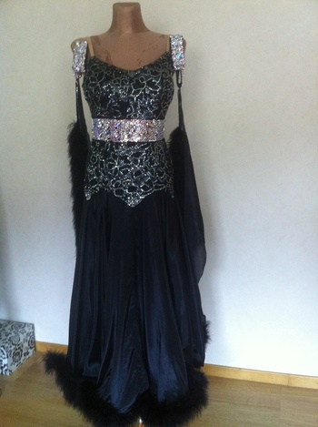 | | Owner | Kaja Jackowska | | Location | Sweden | | E-mail | kaja.jackowska@gmail.com | | Advert clicks | 833 | | | | | Type | Ballroom dress | | Color | Black | | Size | 34-36 | | Price | € 950.00 EURO | | Price Type | Fixed price | | Condition | Used | | | | | Description | This stunning black ballroom dress is made out of Chrisanne fabrics, exept underskirt. A lot of stones, hematite, black diamond and crystal AB. All svarovski. Ostrish feathers from Chrisanne. Exellent condition.