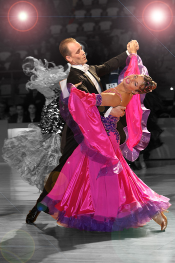 Bij deze bied ik mijn roze paarse ballroomjurk aan. De jurk is door mijzelf ontworpen en heb ik laten maken in italie door Sylvia design. Op de jurk zit paars kant verwerkt en is de jurk met twee kleuren swarovskistrass beplakt. Er zit ook een huidkleurig stuk stof in verwerkt en ook deze is volledig beplakt met stenen. De floats kun je met klittenband vastmaken. Er zit veel volume in de jurk en de rok danst prachtig mee. De jurk is slechts 1 seizoen gedragen bij de NADB wedstrijden. Met deze jurk zul je zeker opvallen. Als je interesse hebt kun je mailen naar mkruithof1981@hotmail.nl