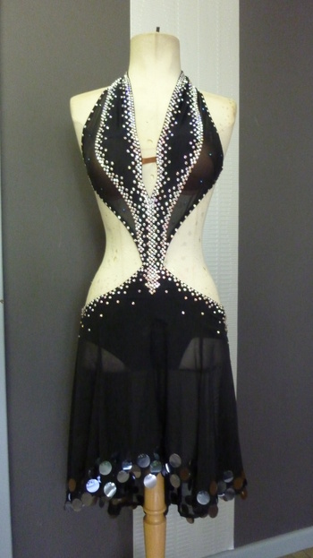 | (80231) Really nice sequined and rhinestoned black latin dress |