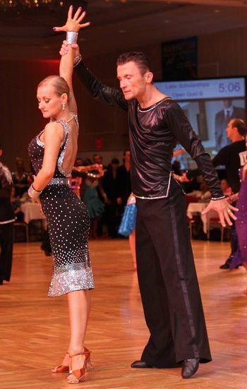 | (88848) Stunning Black Latin Dress with Large Swarowski Crystals |