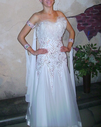 Elegant white ballroom dress with pink details. Richly decorated with white and pink stones. Feathers on the front line, that cont... | € 245.00 Negotiable | |  | Latin dress Netherlands 07-01-2016 |