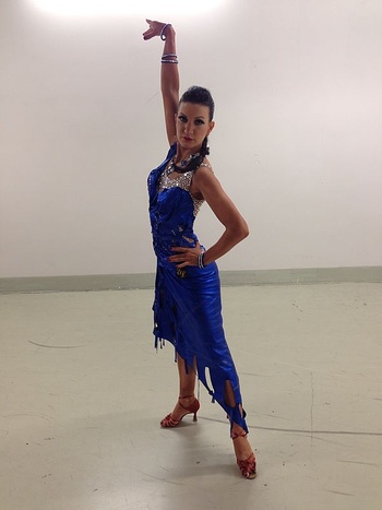 | | Owner | Natalie Zettl | | Location | Austria | | Advert clicks | 370 | | | | | Type | Latin dress | | Color | blue with crystal stones and nude mesh | | Size | 34 (eur.)/XS | | Price | € 450.00 EURO | | Price Type | Negotiable | | Condition | Used | | Link | http://https://www.facebook.com/groups/238521586228666/permalink/1055043944576422/?pnref=story | | | | | Description | Beautiful blue latin dress, asymmetrically cut. Very comfortable to wear. Label: EL. Worn only 3-5 times, original price was EUR 1.000 | Description Accessories | One necklace with many rhinestones, bracelets. | | | | | Transport costs | € 10.00 EURO | Transport Description | |