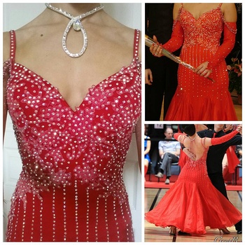 red ballrrom dress Size: s m, Color: red Condition: Used Red ballroom dress with swarovski stones